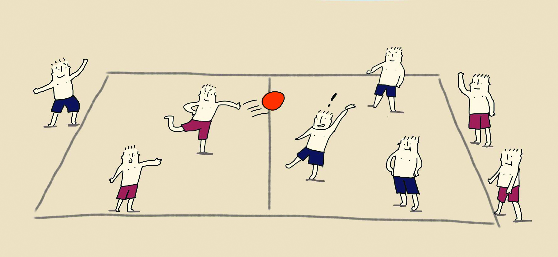 5. ในกรณีที่ปาบอลไม่โดนใครเลย ลูกบอลออกนอกเขตไปอยู่ฝั่งไหน ฝั่งนั้นจะได้เล่นบอลต่อ