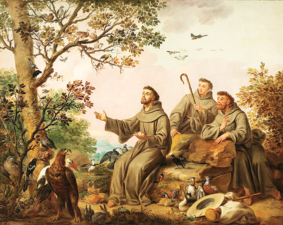 4. นักบุญฟรังซิส อัสซีซี ได้รับการยกย่องว่าเป็นนักบุญผู้อุปถัมภ์สัตว์และระบบนิเวศ ท่านรักทุกสรรพสิ่งที่พระเจ้าสร้างครั้งหนึ่ง ท่านได้ออกไปเทศนาที่ตำบลการนาโด และก่อนที่ท่านจะเริ่มเทศน์สอน ท่านสั่งให้นกกระจาบอยู่เงียบ ๆ จนกว่าท่านจะเทศน์เสร็จ นกเหล่านั้นก็นบนอบ ท่านจึงเทศน์สอนประชาชนอย่างร้อนรน ทุกคนที่ได้ฟังก็มีความศรัทธา และเมื่อเทศน์จบ ท่านเงยหน้าขึ้น ก็สังเกตว่ามีนกจำนวนมากเกาะอยู่บนกิ่งไม้ ท่านจึงบอกกับเพื่อน ๆ ว่า คอยอยู่ที่นี่ก่อนฉันจะไปเทศน์ให้น้องนกฟัง” แล้วท่านก็เดินไปที่สวนนั้นและเริ่มเทศน์ บรรดานกก็พากันบินลงมาหาท่าน อยู่รวมกันเป็นหมู่ เมื่อท่านเทศน์จบพวกนกก็ไม่ยอมไป ท่านจึงเดินไปมาระหว่างนกพวกนั้น ต่อมาเมื่อท่านอวยพรแล้วพวกนกจึงยอมจากไป