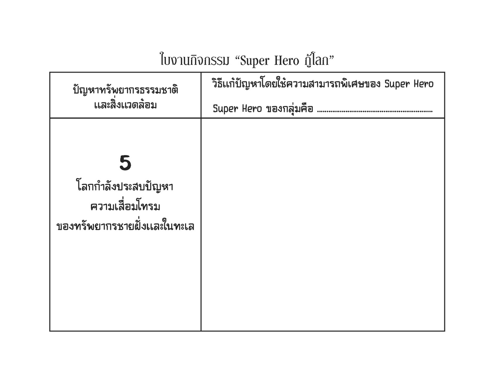 2. ผู้สอนเตรียมใบงานปัญหาทรัพยากรธรรมชาติและสิ่งแวดล้อม 5 หัวข้อ