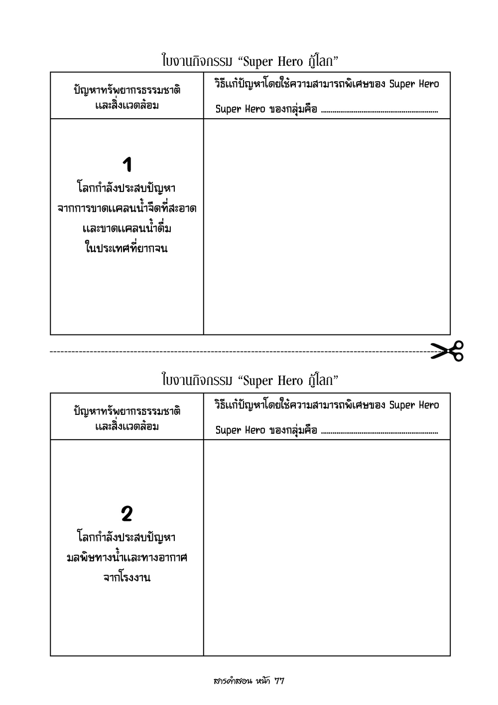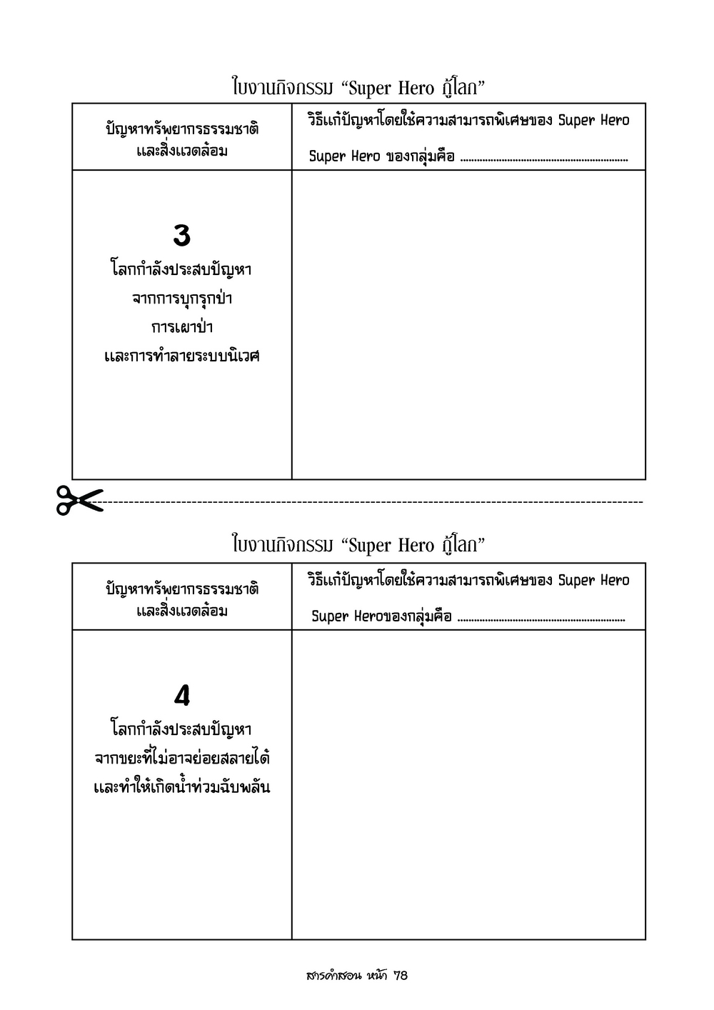 2. ผู้สอนเตรียมใบงานปัญหาทรัพยากรธรรมชาติและสิ่งแวดล้อม 5 หัวข้อ